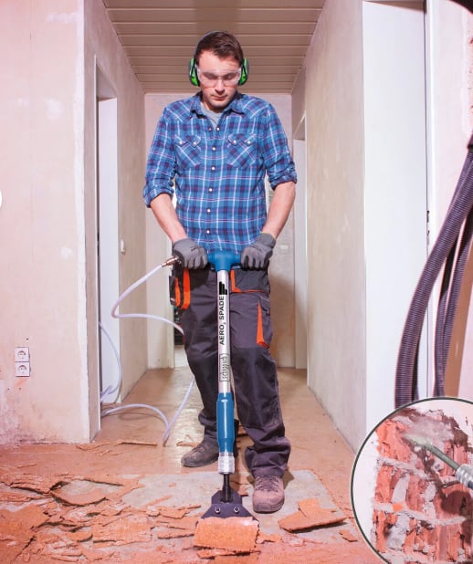 Scheppach AERO2 SPADE, “5-in-1” işlevli bir pnömatik kırıcıdır.